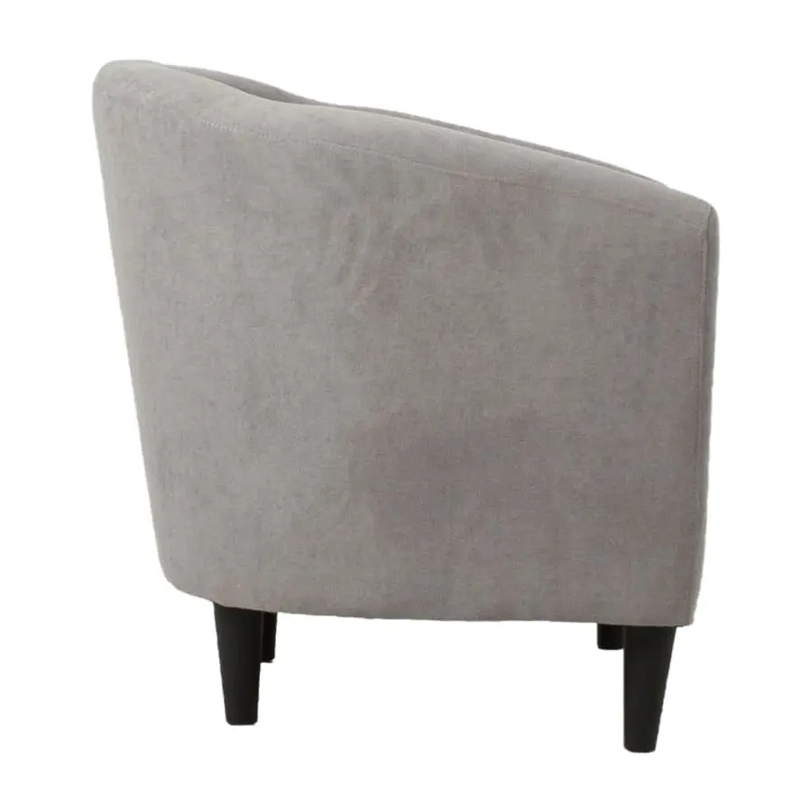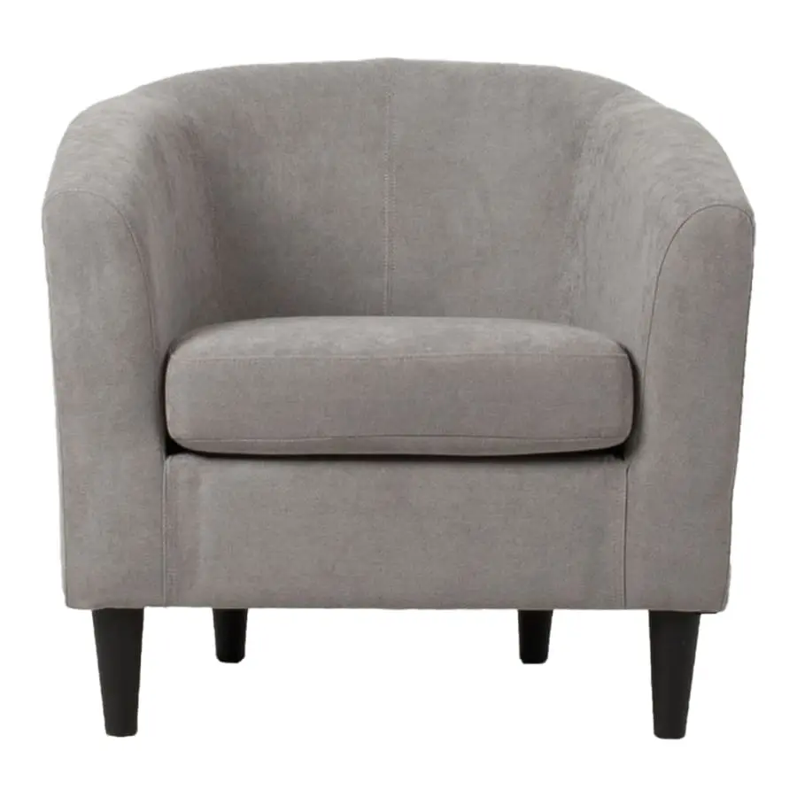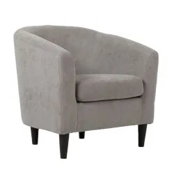 Wester armchair with plush seat cushion. Frame made of solid wood and pocket suspension. Padding polyurethane foam 24 kg/m³, 18 kg/m³ and upholstered with 100% polyester fabric. Dark plastic legs.