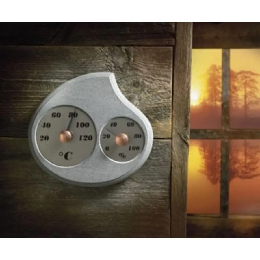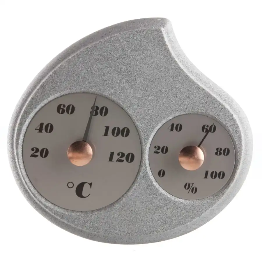 MAININKI, hewn of soapstone, for measuring the temperature and humidity in your sauna. Soapstone sauna thermo- and hygrometer.
