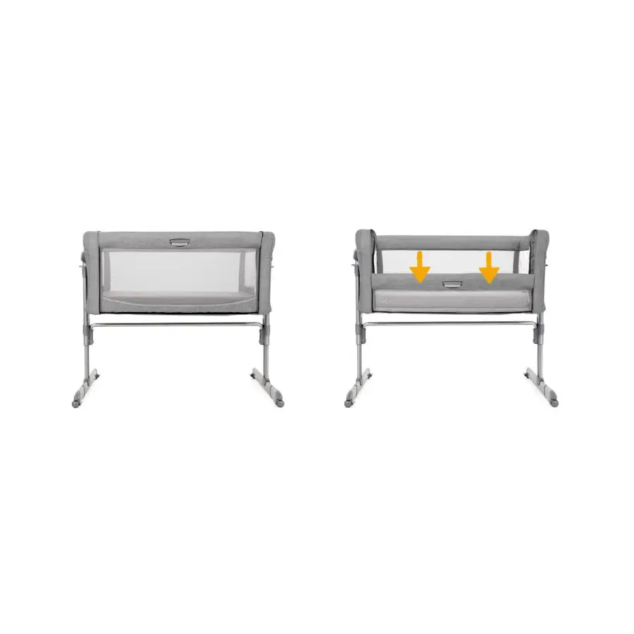 Turvallinen nukkuminen vierekkäin jakamatta samaa sänkyä tukee vanhemman ja vauvan välistä yhteyttä. Liukuva sivupaneeli nousee ja laskee yhdellä kädellä, mikä auttaa sinua vastaamaan keskiyön herätyskutsuihin sujuvasti myös puoliunessa.