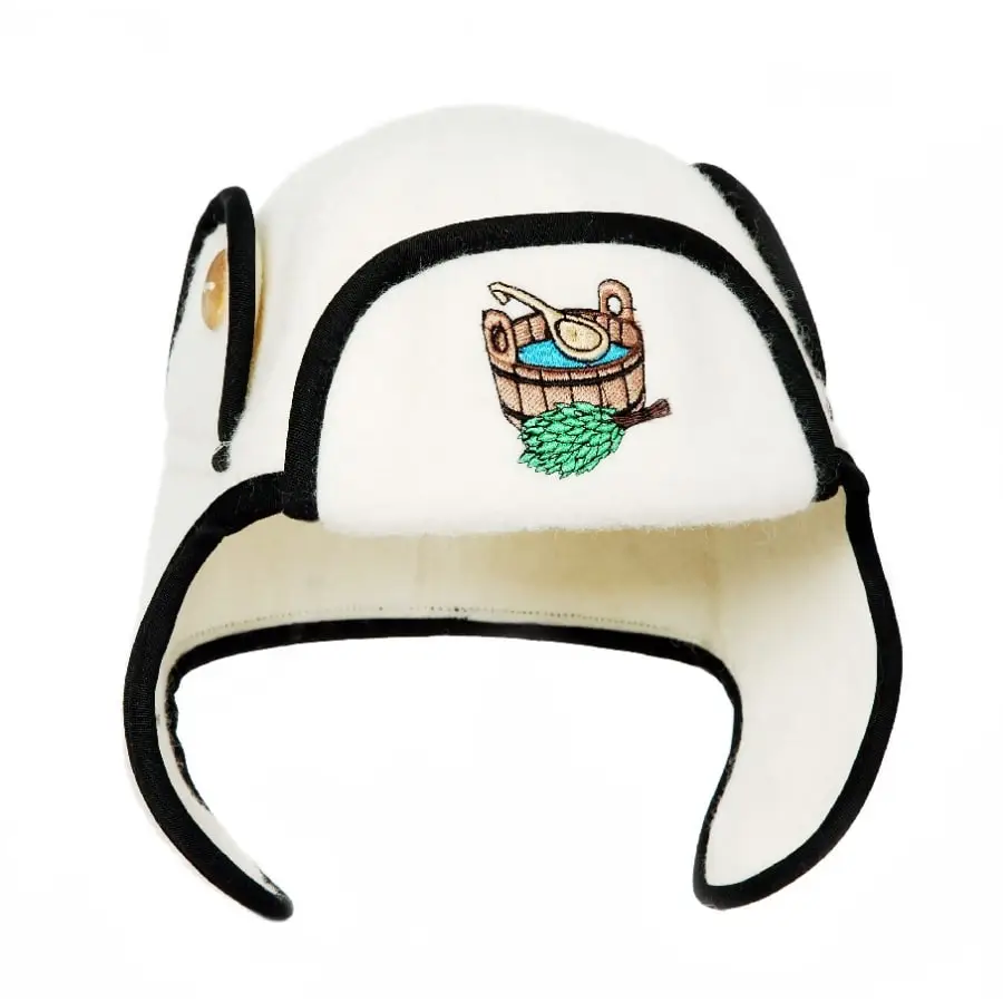 To protect the head, hair and neck from the heat of the sauna. Also suitable for use at hot tub. Felted 100% wool. Hand wash, shape while moist.