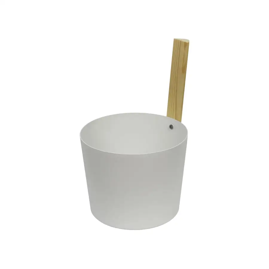 High-quality domestic design. The handle part is pine and the cup part is effect-painted aluminum. Ø 220 x 350 mm / 6 ltr.