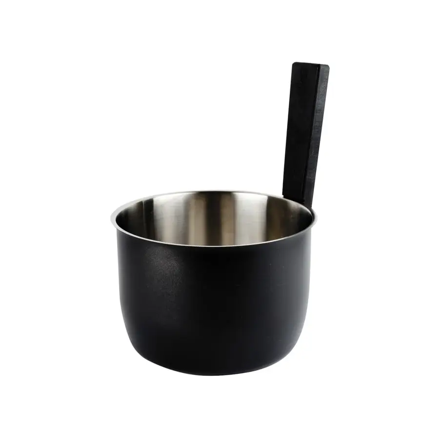 Den moderna svarta bastutratten som lämpar sig för dagens bastuvärld är gjord av rostfritt stål, den inre ytan är borstad till en matt finish. Diameter 23 cm, volym 5 liter.