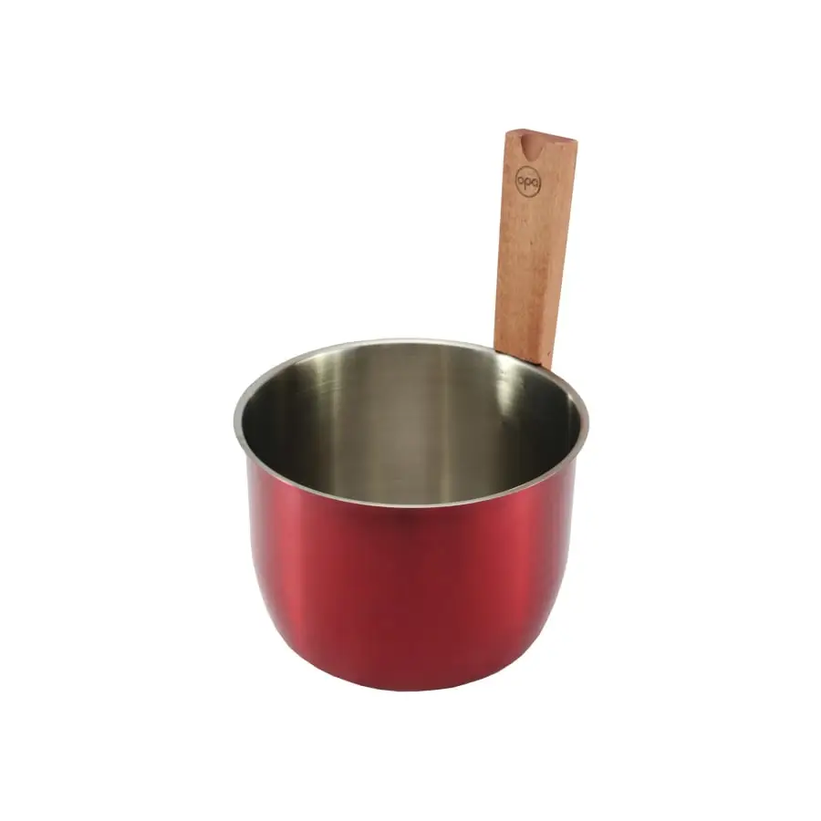 The modern red sauna beam suitable for today’s sauna world is made of stainless steel, the inner surface is brushed to a matte finish. Diameter 23 cm, volume 5 liters.