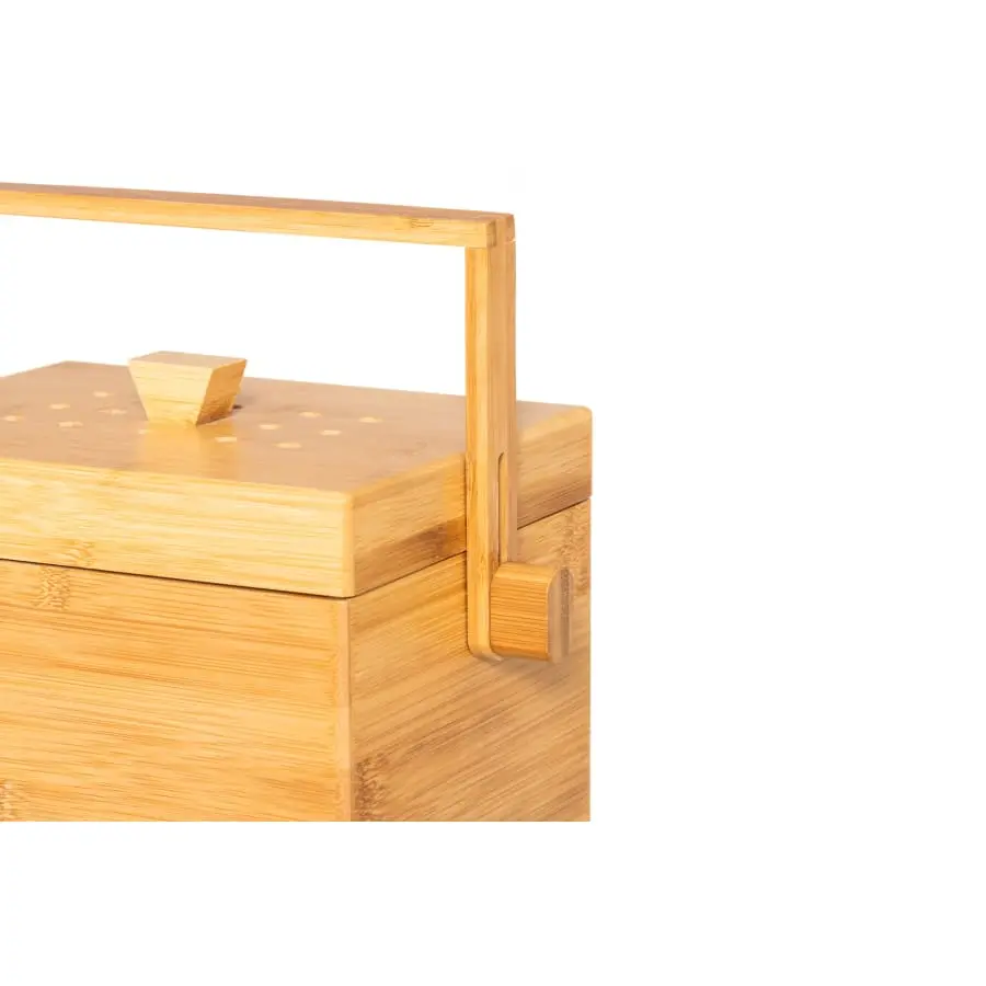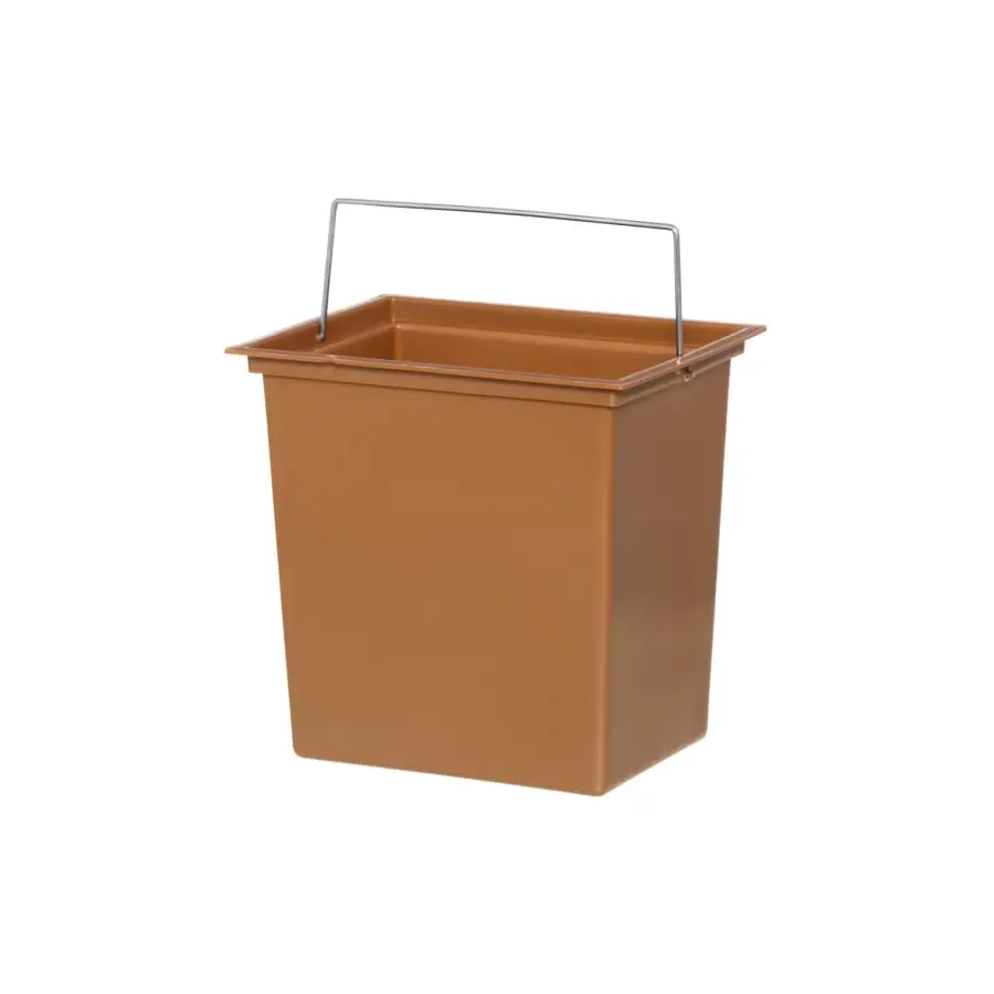 Indoor kitchen compost container with lid has an elegant look that fits in and makes a perfect accent piece for any kitchen counter. It’s a discreet alternative to large pails and ugly trash cans. Removable plastic container inside. Easy to keep clean. Volume 4 L.