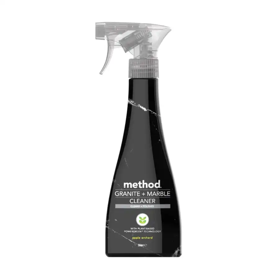 Cleans and polishes granite and marble surfaces. Granite is cool. Literally. Lay your face against a slab of the stuff, and you’ll feel like you’re sleeping on the other side of the pillow. In Antarctica. But before you go laying your head on your kitchen worktop for an afternoon nap, use this granite + marble cleaner to buff your sleepytime stone to a beautiful, ick-free shine. Made with plant-based, biodegradable ingredients, it safely cleans, polishes + shines granite, marble and any other sealed stone without the streaks or stress.