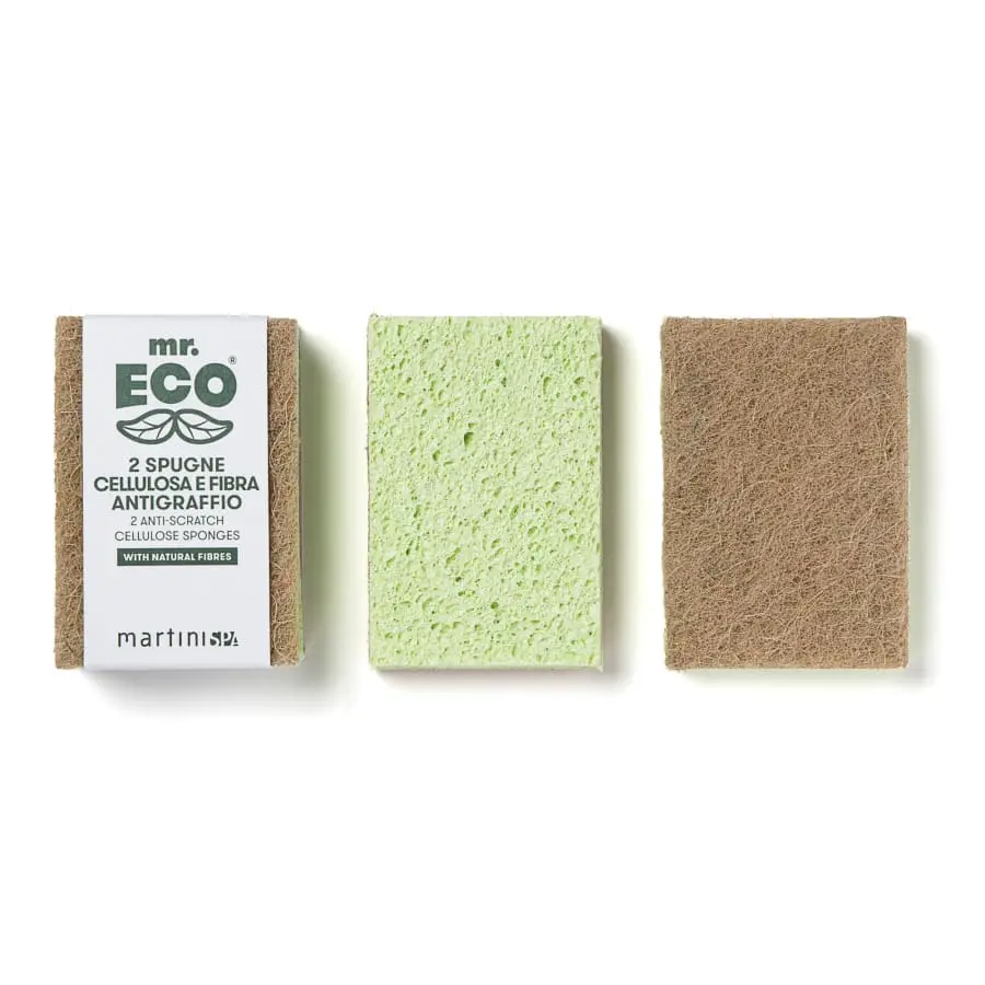 MrEco Dual action sponge in cellulose of plant origin and anti-scratch fibre with recycled Sisal and PET. The plant-origin cellulose side is super absorbent. Ideal for cleaning gently, while the non-scratch fibre side thoroughly cleans the most encrusted surfaces. Multi-purpose. Ideal for kitchen and bathroom.