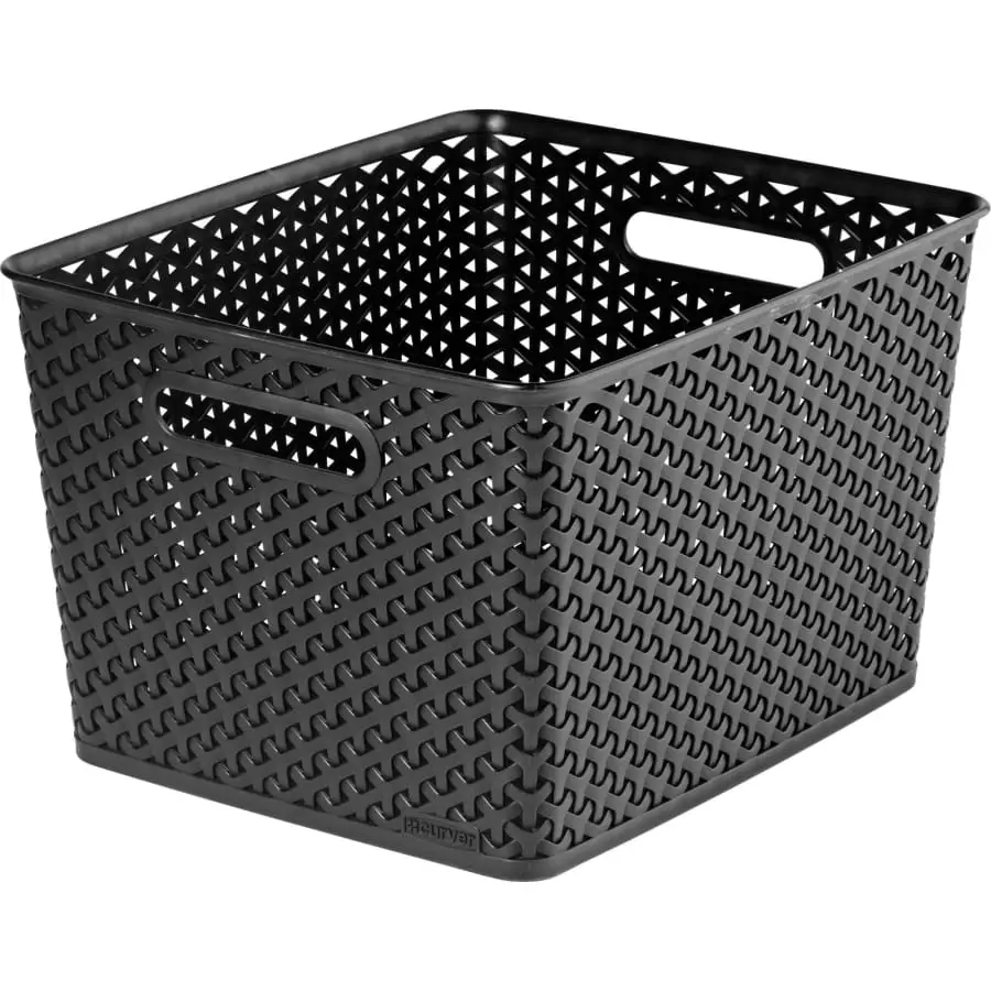 Curver My Style förvaringskorgen har en yta som en flätad korg. Korgen finns i tre olika storlekar (S, M och L). Korgen måste staplas. Lämplig för både vardagsrum och badrum.