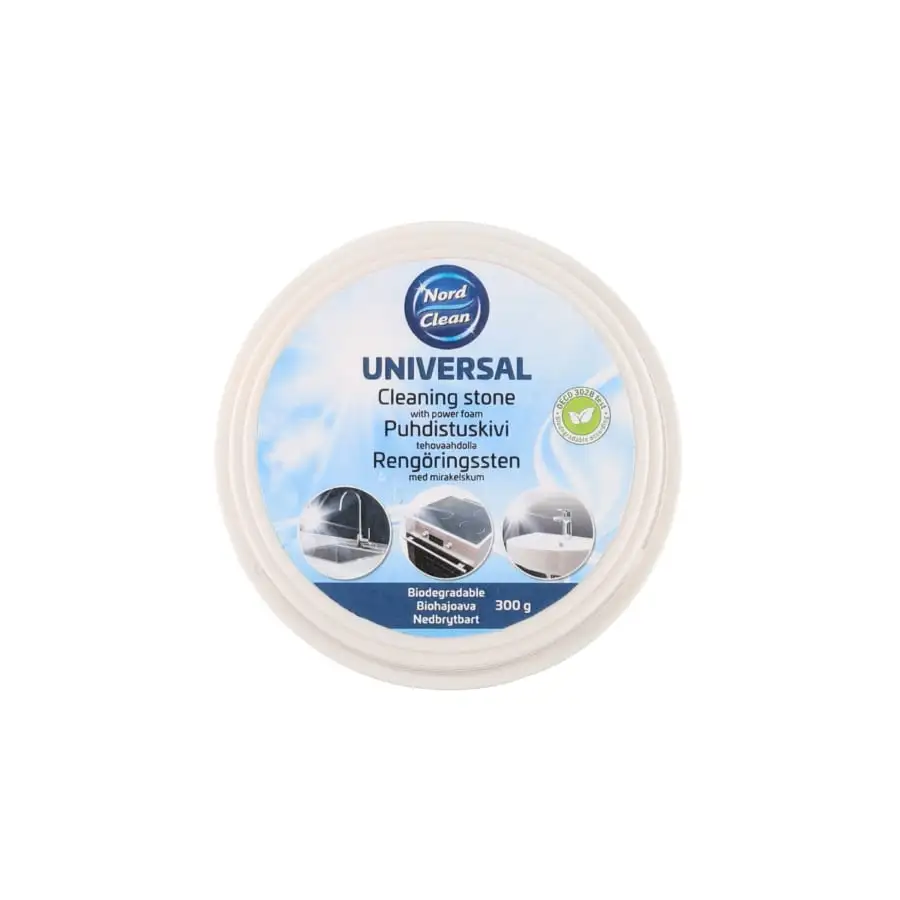 The super popular and effective cleaning stone cleans, polishes and protects most surfaces in the home. It removes stubborn stains, limescale, grease and leaves a dirt and water repellent surface. Polishes metal surfaces and objects. Also ideal for cleaning and maintaining various hobby equipment. The cleaning stone effectively cleans almost anything, but if the surface is porous or delicate, try it in an inconspicuous spot first. The package contains a sponge. A fresh scent of lemon.