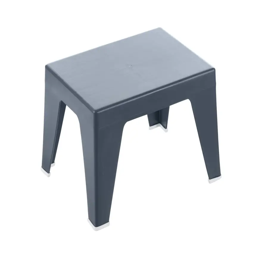A domestic low-profile plastic stool with non-slip slides is well suited as a bathroom stool. Height 35 cm.