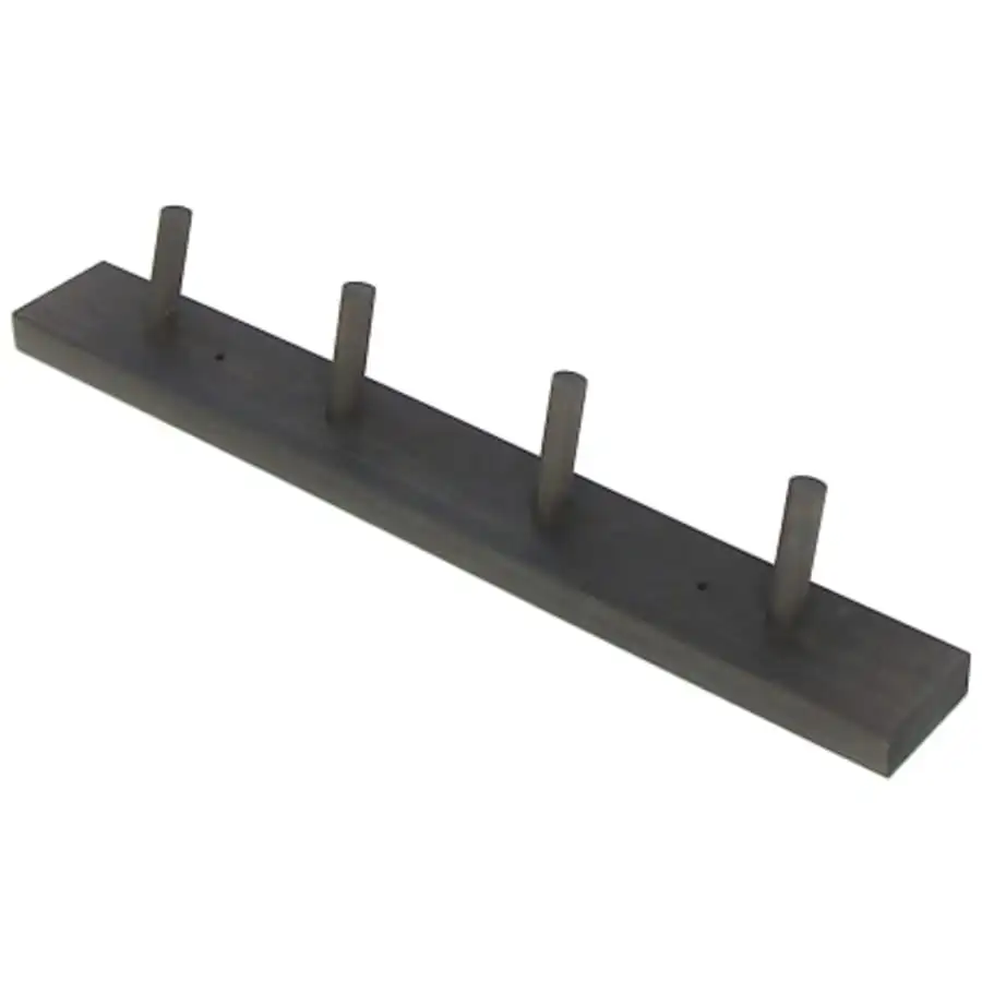 The black coat rack has slanted pegs on which it is easy to hang even larger clothes and towels.