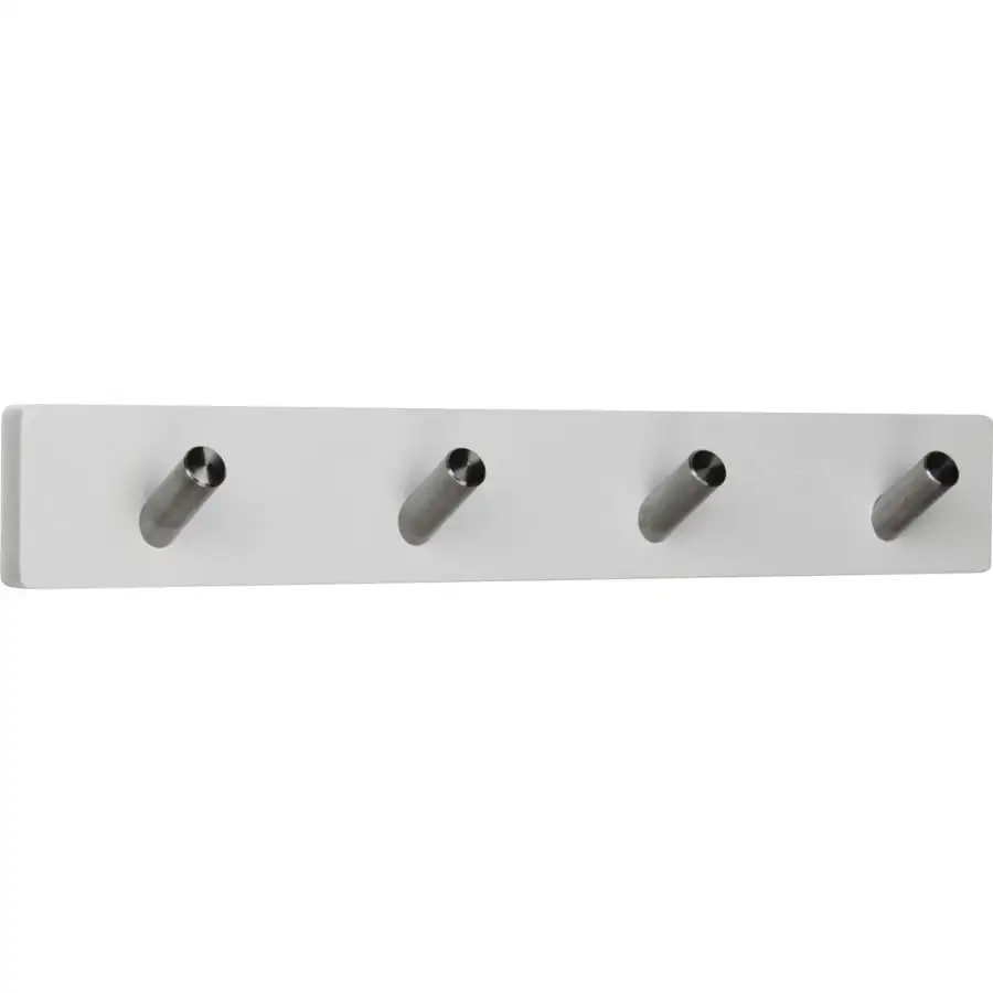4-hook coat rack. Color/Material black painted mdf, varnished birch or white painted mdf. Stainless steel hooks. Width 40 cm, height 6 cm.