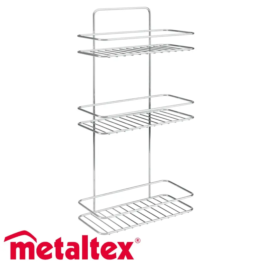 Chrome-plated 3-level wall shelf. Dimensions: Height 53 cm and width 27 cm. Does not include mounting accessories.