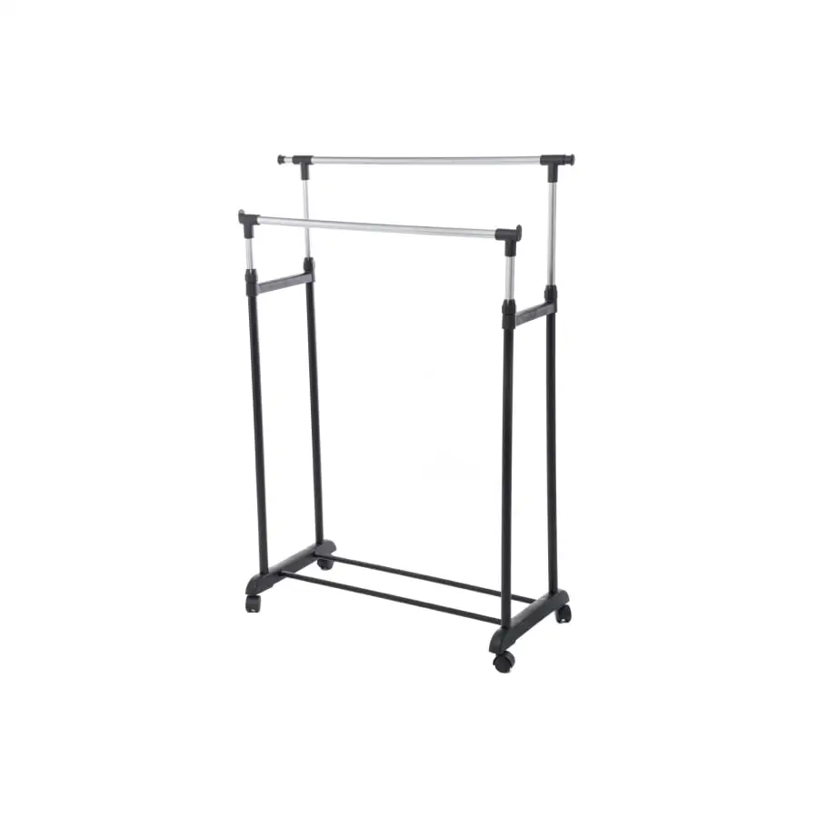 Size: 82,5-125 x 42,5 x 97-170 cm. Adjustable height 95-170 cm. Max. 18 kg. 2 racks. Handy rack for clothes storage and airing. Wheels for easy moving.