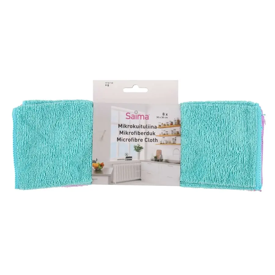 30 x 30 cm. 200 gsm. Lint-free. For general cleaning when damp and for dusting when dry. Do not use fabric softner when washing the item in the washer.