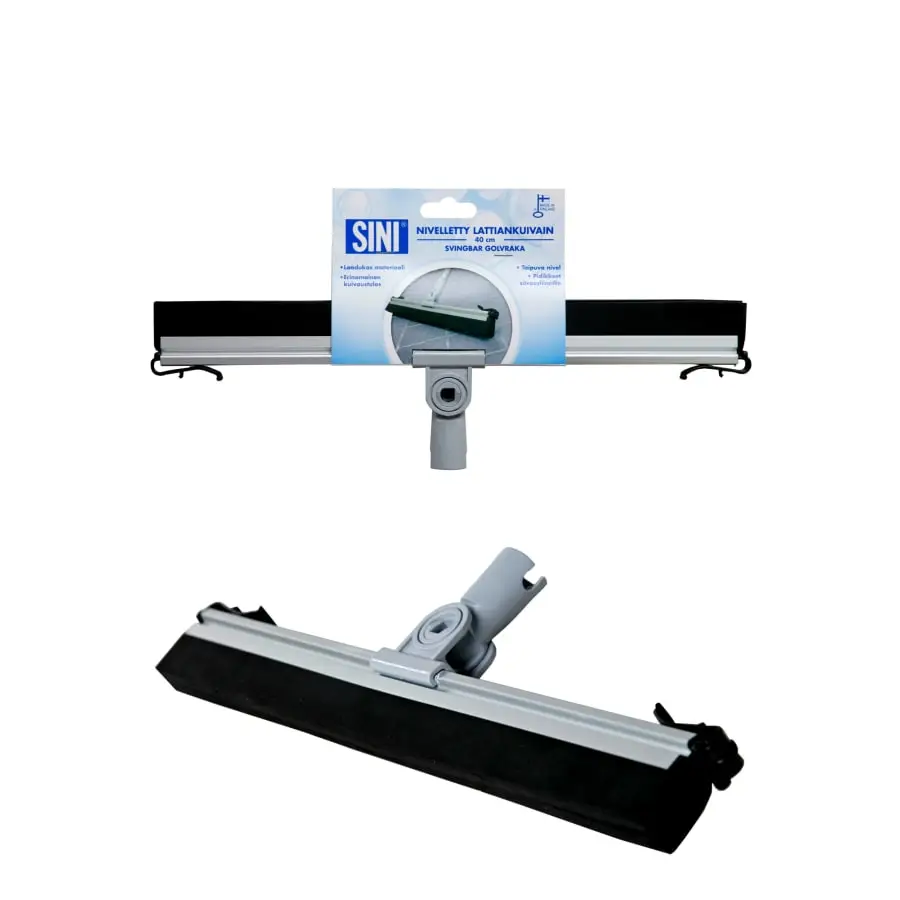 Den ledade golvtorken är en effektiv golvavjämning för torkning av golv även i trånga utrymmen. Böjer sig under möbler. Torken passar alla SINI verktygsarmar. Golvvasken har tyghållare, på vilka det är lätt att fästa en golvduk för att tvätta eller vaxa golvet.