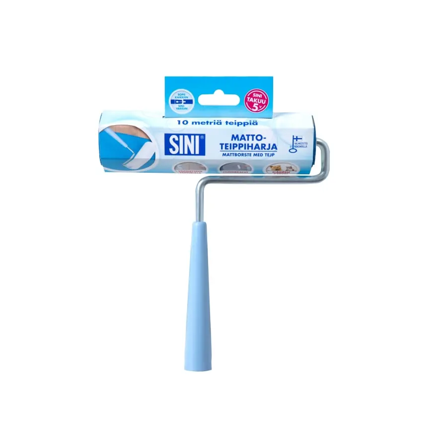 Matttejpborstens 20 cm breda spårliknande rulle har 10 meter tejp och färdiga snitt där den använda tejpen kan rivas av. Matttejpborsten kan kombineras med alla SINI verktygsarmar, så mattrengöring kan göras utan att böja sig.