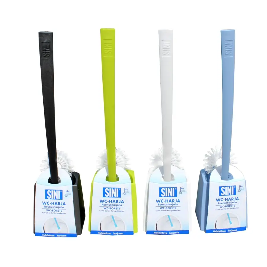 Toalettborsten SINI är så vackert designad att det är ett nöje att lämna den synlig bredvid toalettskålen. På så sätt, när du rengör borsten, behöver du inte gräva ur skåpet, utan den är tillgänglig direkt. Borstarna har också fått nya färger: två nyanser av blått och vitt och turkos. Toalettborsten finns både med och utan kantborste. Den långskaftade borsten är lätt att arbeta med, och kantborsten gör att du bekvämt kan rengöra poolens kanter. Toalettborstens borst är av slitstark nylon. Det går bra att förvara borsten i sin egen stadiga hållare.
