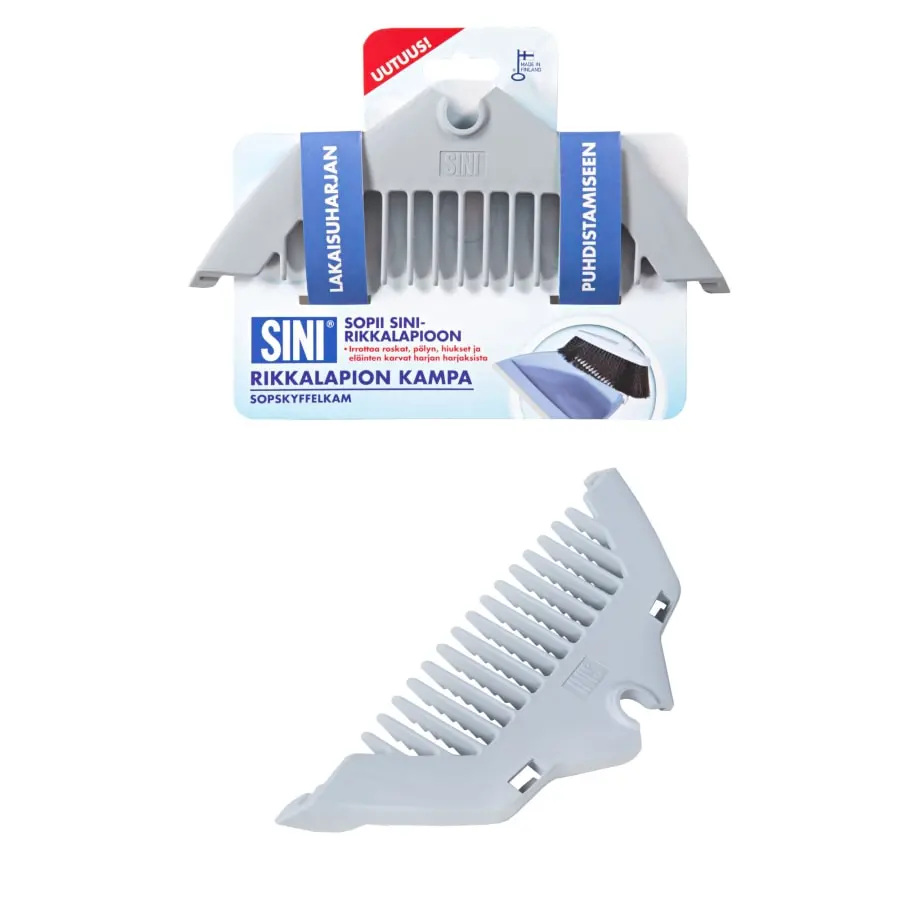 Sopskinnskammen är till stor hjälp för att rengöra sopborsten. Tack vare de sågtandade spikarna går borsten på sopborsten bra genom spikarna. Rikkalapios kam tar enkelt bort skräp, damm, hår och djurhår från borsten.