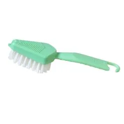 An efficient brush for washing potatoes and roots. Also suitable for washing fruit. The ergonomic handle provides a firm grip that protects the fingers. The snappy brush removes the peels easily. Bud remover on the end. Rinse the brush after use and hang it on a hook to dry. The brush can also be washed in the dishwasher. Suitable for home and cottage. Recycled plastic.