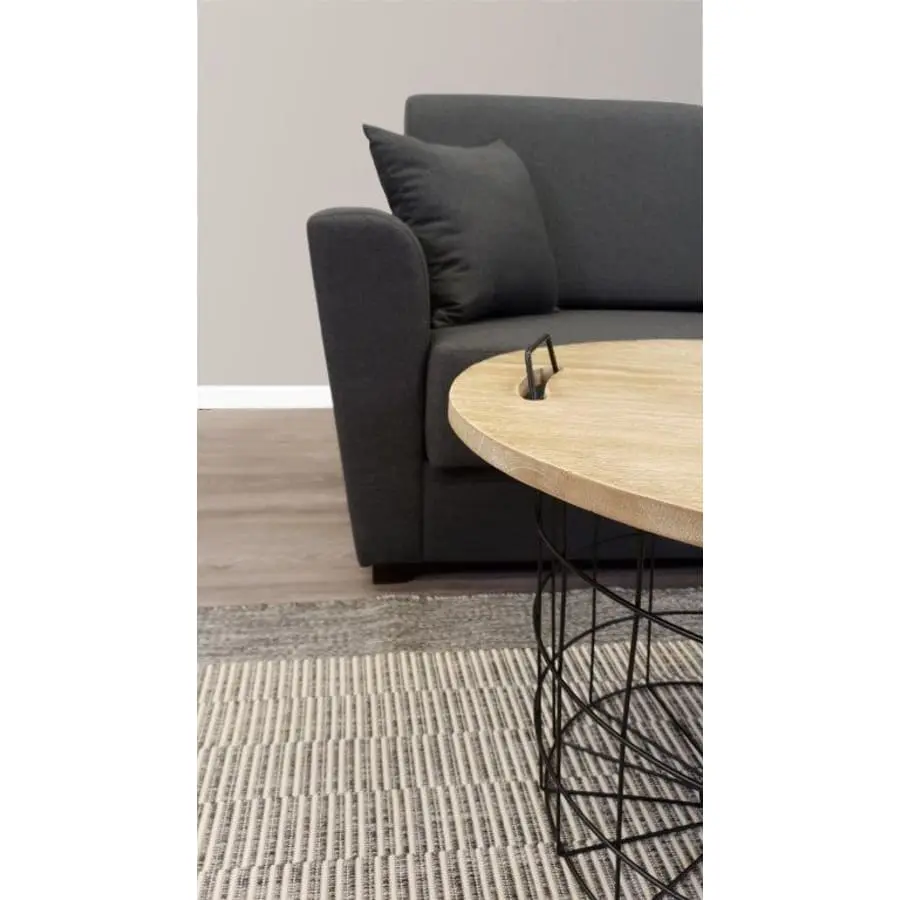 The frame of the product is solid wood and birch plywood. (does not include chipboard) brown stained legs, height 2.5cm. Zig-zag suspension in the seat parts. Load-bearing foam in the seats E30kg. Seat structure 15 cm high. Back pillows made of extra soft foam HR35kg, pillow thickness approx. 15cm. The seat cushions are upholstered and the back cushions are detached. Norn furniture fabric, color 18 dark gray. Fabric technical data: Abrasion resistance: max 50,000 Martindale see fabric technical data pdf.