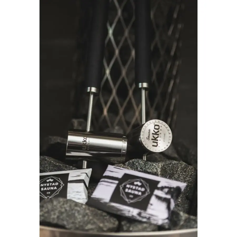 Kompromisslöst kvalitetsarbete, tillverkat i Finland, i samarbete med de bästa svarvarna och snickarna. Häll eller släng, Ukko Löyly XO fungerar utmärkt. Den koppformade vattentanken leder vattnet exakt till kaminen. Detta är en lyxpresent till en passionerad bastuälskare.
